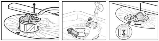 Nettoyez les bras d'aspersion comme décrit dans le manuel. Vérifiez que les trous des bras d'aspersion sont ouverts.