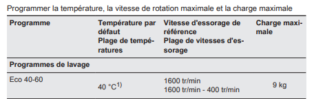 - Température non réglable avec le programme ECO 40-60 sur la machine à laver.